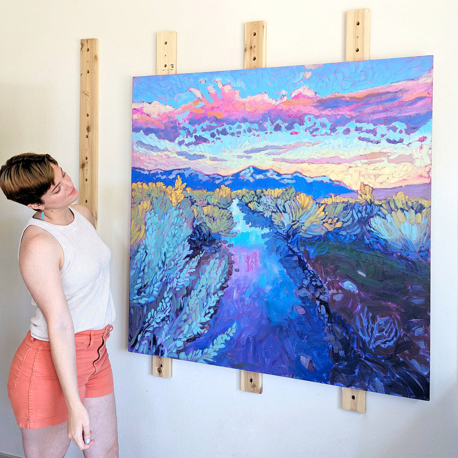 All original artworks arrive ready-to-hang. Aside from cradled wood panel pieces, all original artwork is done on canvas and finished around the sides for a beautiful presentation on any wall.